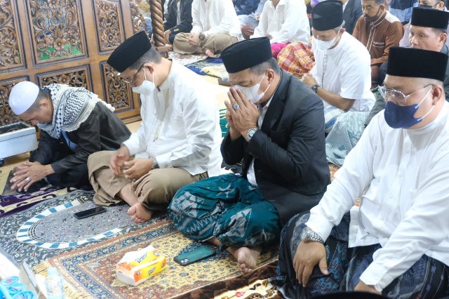 Sebelum shalat Id, Bupati Muchtar Ali Yusuf menyampaikan sambutan di hadapan jamaah shalat Idul Fitri.