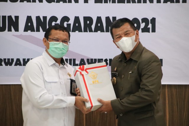 Predikat opini WTP ini disampaikan langsung oleh Ketua Perwakilan BPK Provinsi Sulawesi Selatan, Paula Henri Simatupang pada acara penyerahan Laporan Hasil Pemeriksaaan (LHP) BPK atas Laporan Keuangan Pemerintah Daerah Tahun Anggaran 2021 kepada Pemerintah Kabupaten Bulukumba dan Pemerintah Kabupaten Toraja Utara di Aula Kantor BPK di Makassar, Senin 23 Mei 2022.
