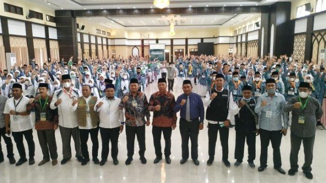 Usai memberikan sambutan, pimpinan daerah ini memberikan manifest jamaah kepada Kabid Penerimaan Jamaah, Sawedi SAg MPdi.