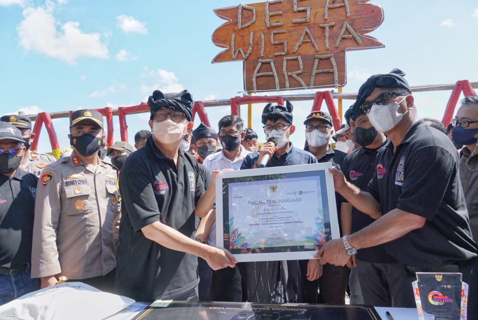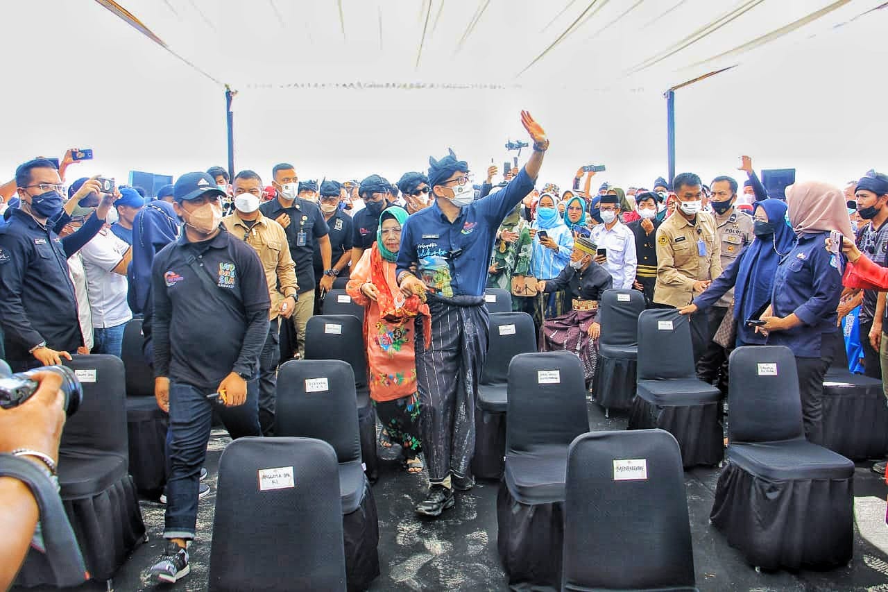 Menteri Pariwisata dan Ekonomi Kreatif (Parekraf) H. Sandiaga Salahuddin Uno berkunjung ke Desa Wisata Ara, Kabupaten Bulukumba. Sandi bermalam di Kawasan Pantai Bira pada 24 November 2021.