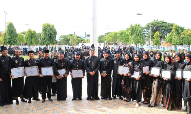 Pada momentum tersebut, mantan legislator provinsi ini juga menyerahkan sejumlah penghargaan kepada ASN guru, diantaranya penghargaan Satyalancana Karya Satya 30 tahun, 20 tahun dan 10 tahun.