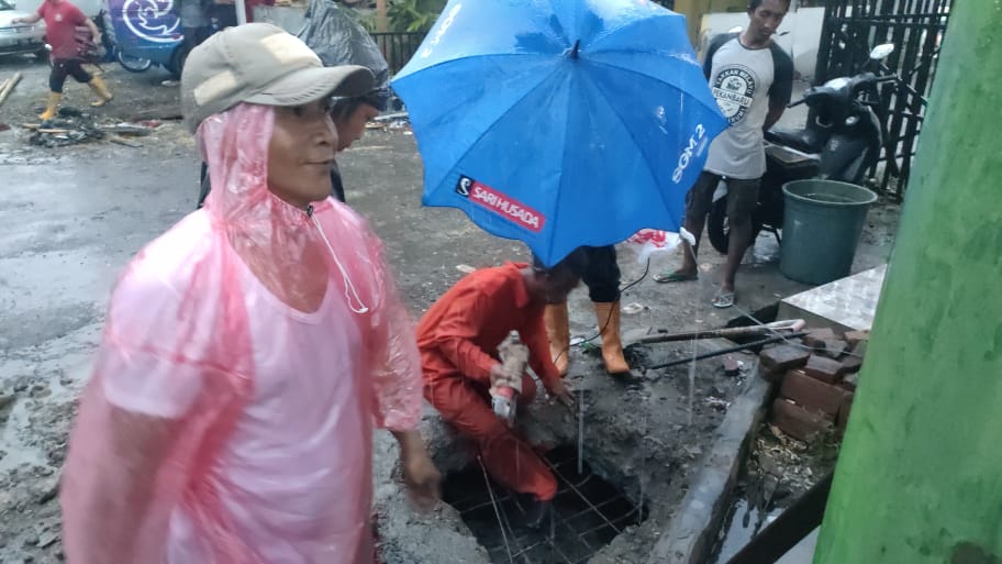 Dipimpin oleh Ketua Tim Kendali Banjir Andi Zulkifli Indrajaya, sejumlah pasukan lintas OPD melaksanakan tugas pembersihan drainase di sekitar jalan Rambutan Kelurahan Loka Kecamatan Ujungbulu, Rabu 19 Januari 2022.