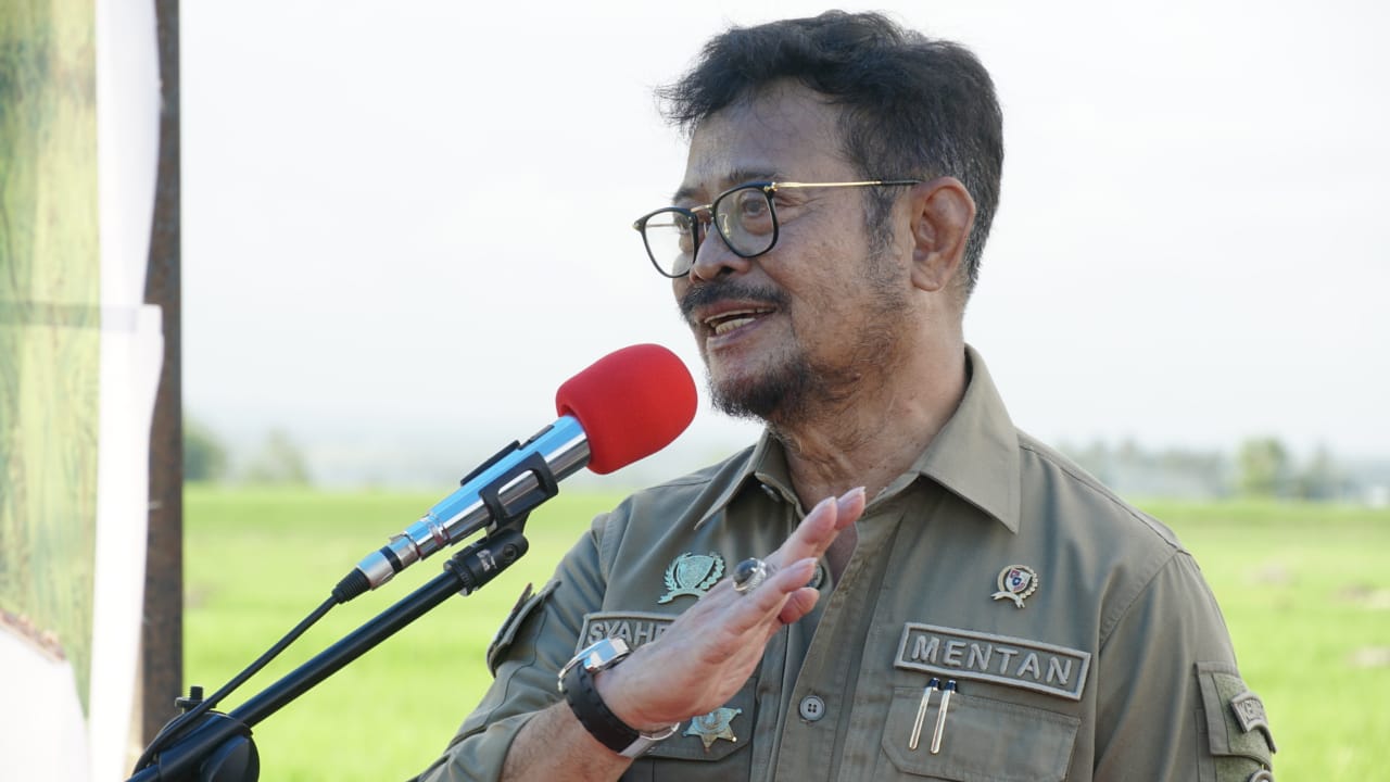 Kedatangan Mentan SYL untuk meninjau program IP400 dalam rangka swasembada pangan di hamparan sawah Desa Bialo, Kecamatan Gantarang, Minggu 6 Februari 2022