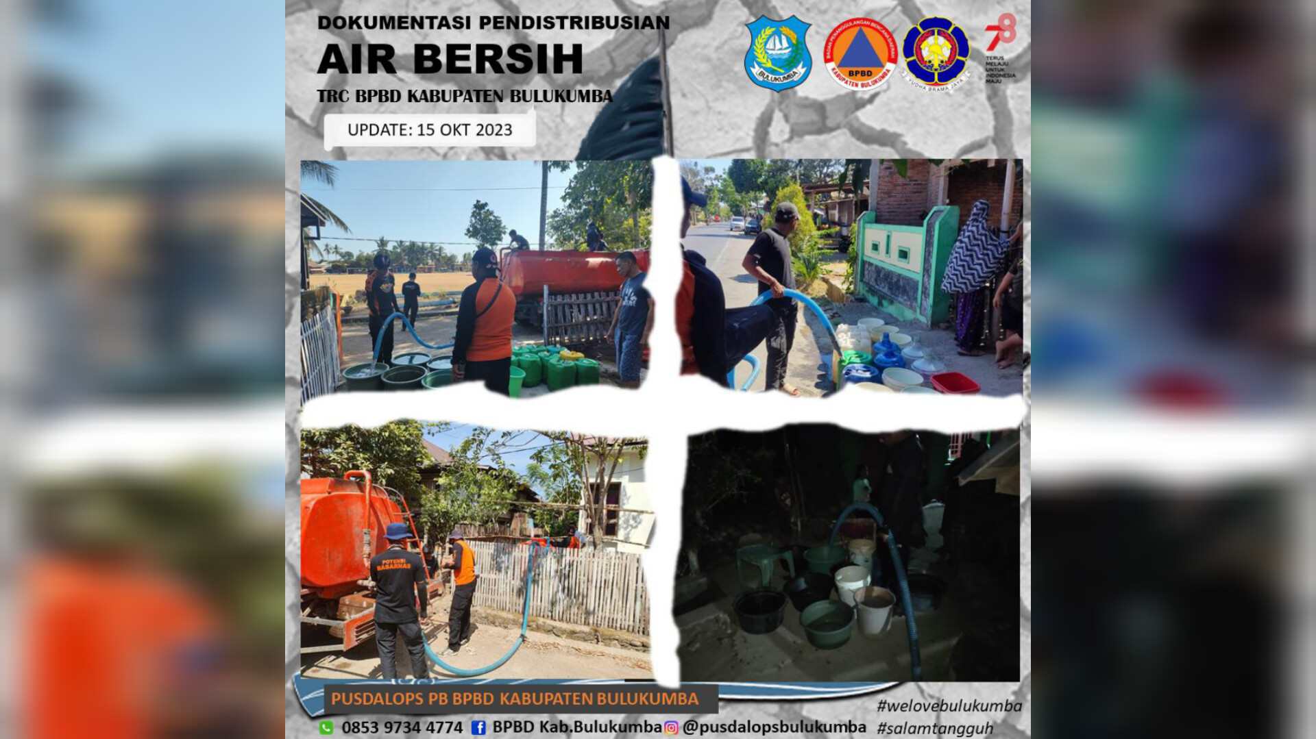 Sejak awal kemarau, BPBD Bulukumba telah berhasil mendistribusikan sebanyak 558 ribu liter air bersih ke 1.882 kepala keluarga, yang terdiri dari 5.597 jiwa, tersebar di empat kecamatan dan 14 desa/kelurahan di Kabupaten Bulukumba.