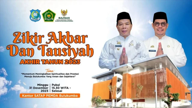 BULUKUMBA, HARAPAN BARU – Menyambut pergantian tahun 2023 ke 2024, Pemerintah Kabupaten Bulukumba akan menggelar Zikir Akbar dan Tausiyah yang akan ditempatkan di Top Floor Gedung Phinisi, Minggu 31 Desember 2023. Kegiatan akan dimulai pada pukul 15.30 atau Ba’da shalat Ashar