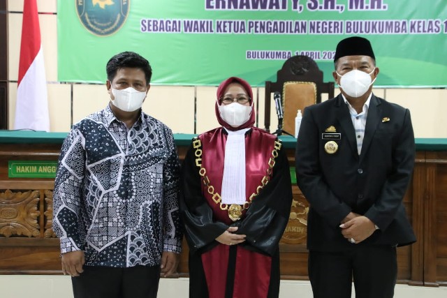 “Atas nama Ketua Mahkamah Agung RI, saya Ketua Pengadilan Negeri Bulukumba mengambil sumpah dan melantik saudari Ernawaty sebagai Wakil Ketua Pengadilan Negeri Bulukumba Kelas IB. Semoga Allah Swt memberikan berkah kepada saudari,” katanya.