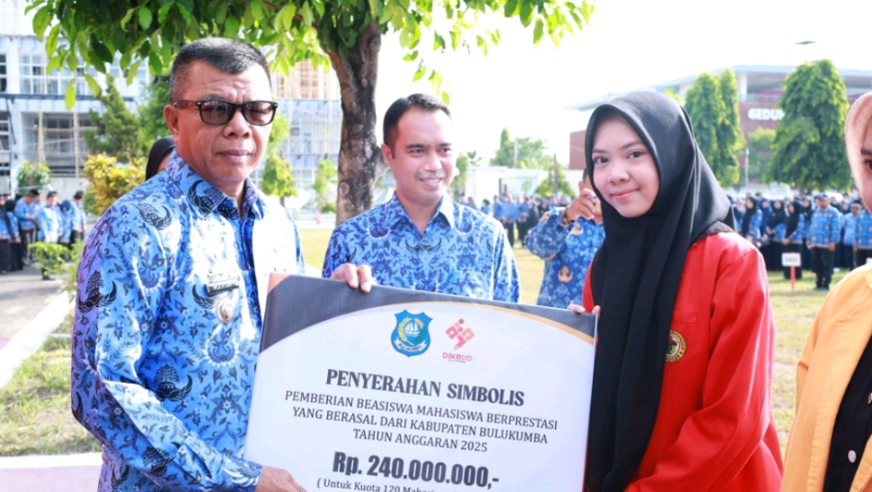 Bupati Bulukumba Andi Muchtar Ali Yusuf menyerahkan secara simbolis beasiswa mahasiswa berprestasi tersebut, di sela Apel Gabungan Organisasi Perangkat Daerah (OPD) lingkup Pemkab Bulukumba, Senin 17 November 2025.Penyerahan simbolis ini, diterima langsung oleh sejumlah perwakilan mahasiswa penerima manfaat. Seusai menerima, para mahasiswa kemudian foto bersama dengan Bupati Andi Muchtar Ali Yusuf dan Kepala Disdikbud Kabupaten Bulukumba Andi Buyung Saputra.